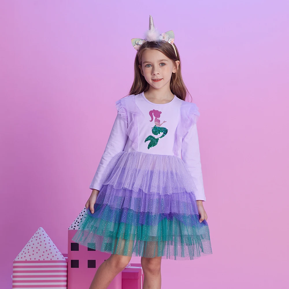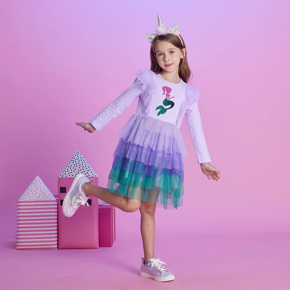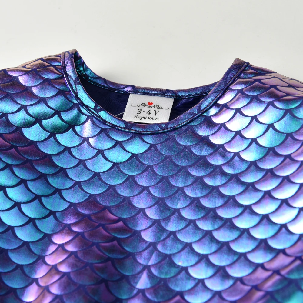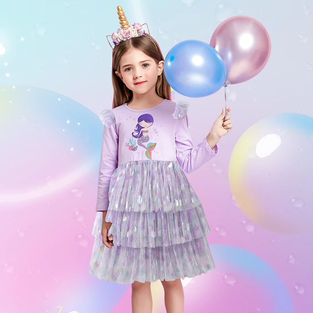 Girls Mermaid Print Dress: Cartoon Print Dress for Girls