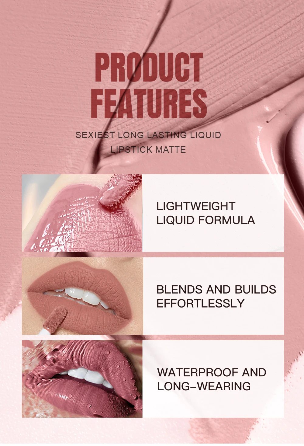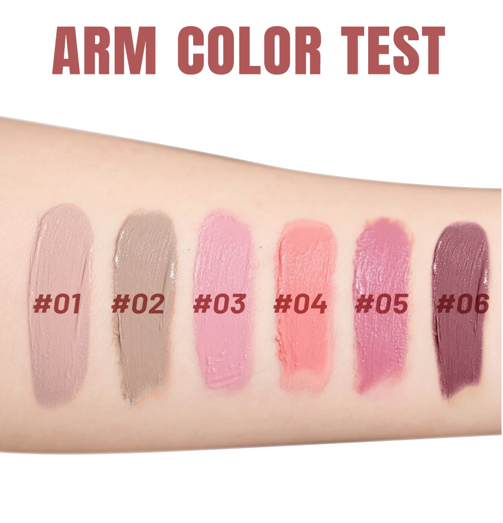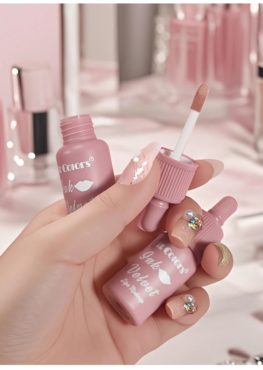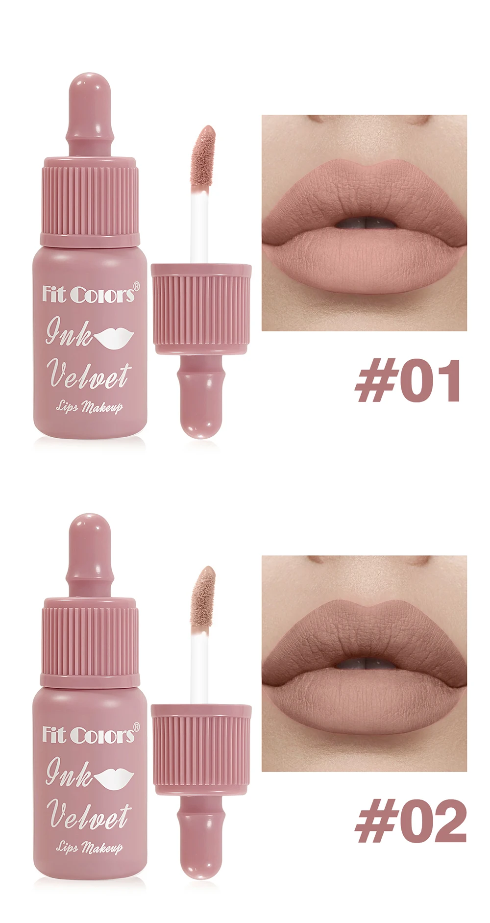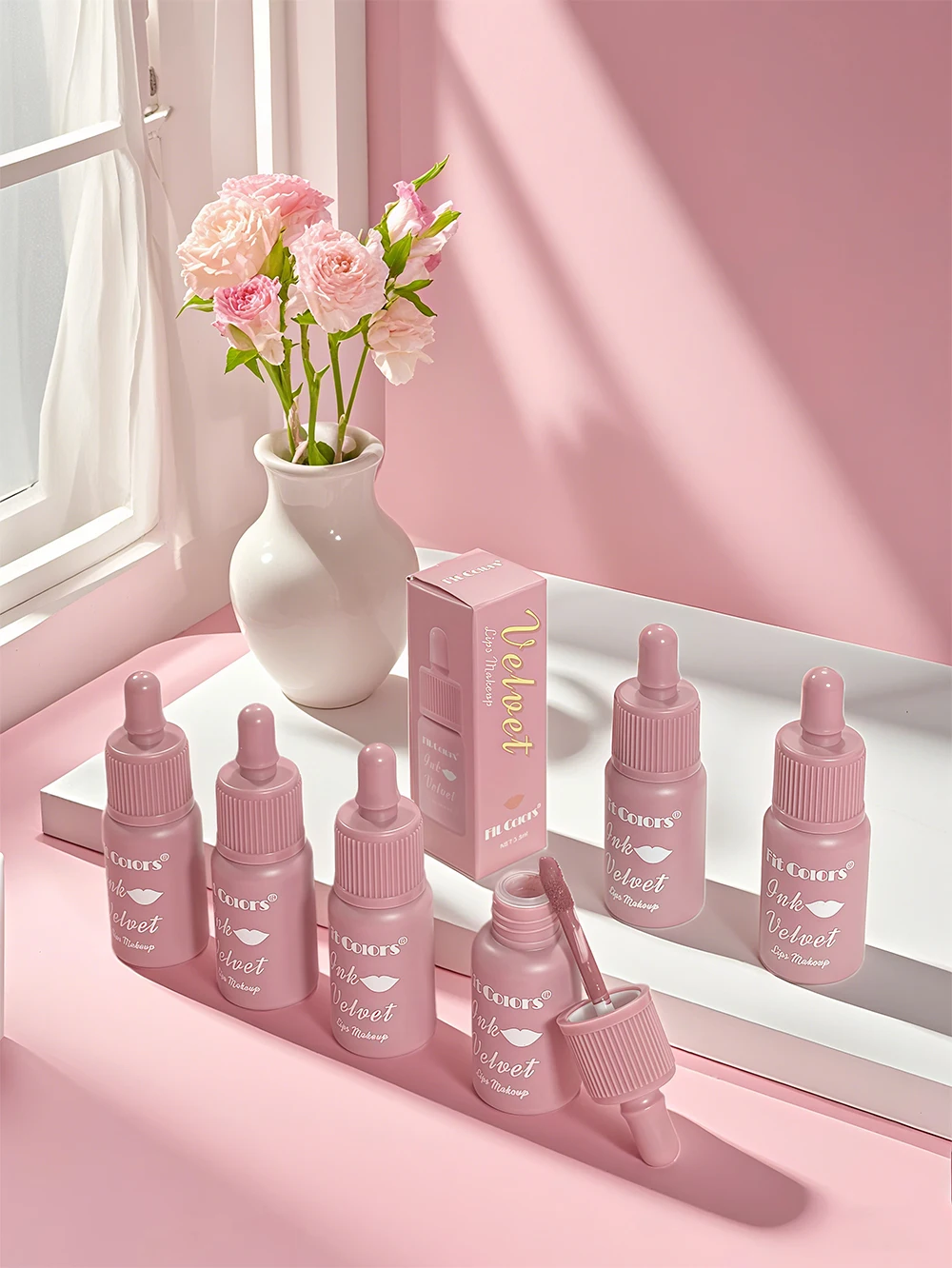 FIT COLORS 6 Color Matte Velvet Liquid Lip Gloss Long Lasting Non-Stick Cup Waterproof Intense Color Showing Lip Mud