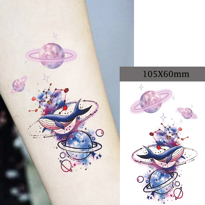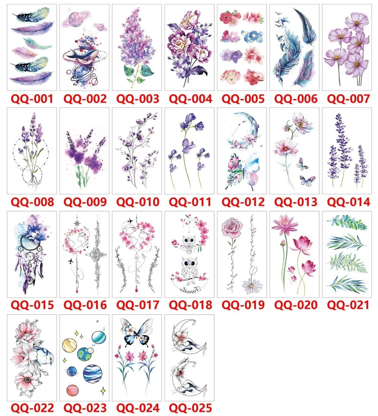 Small Waterproof Temporary Tattoo Sticker Colorful Feather Flower Leaves Planet Moon Women Body Art Wrist Neck Fake Tattoos Men