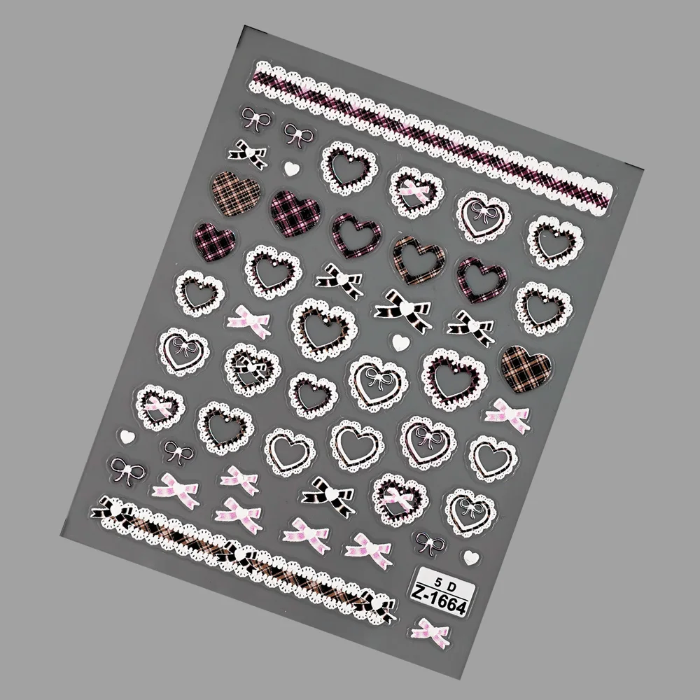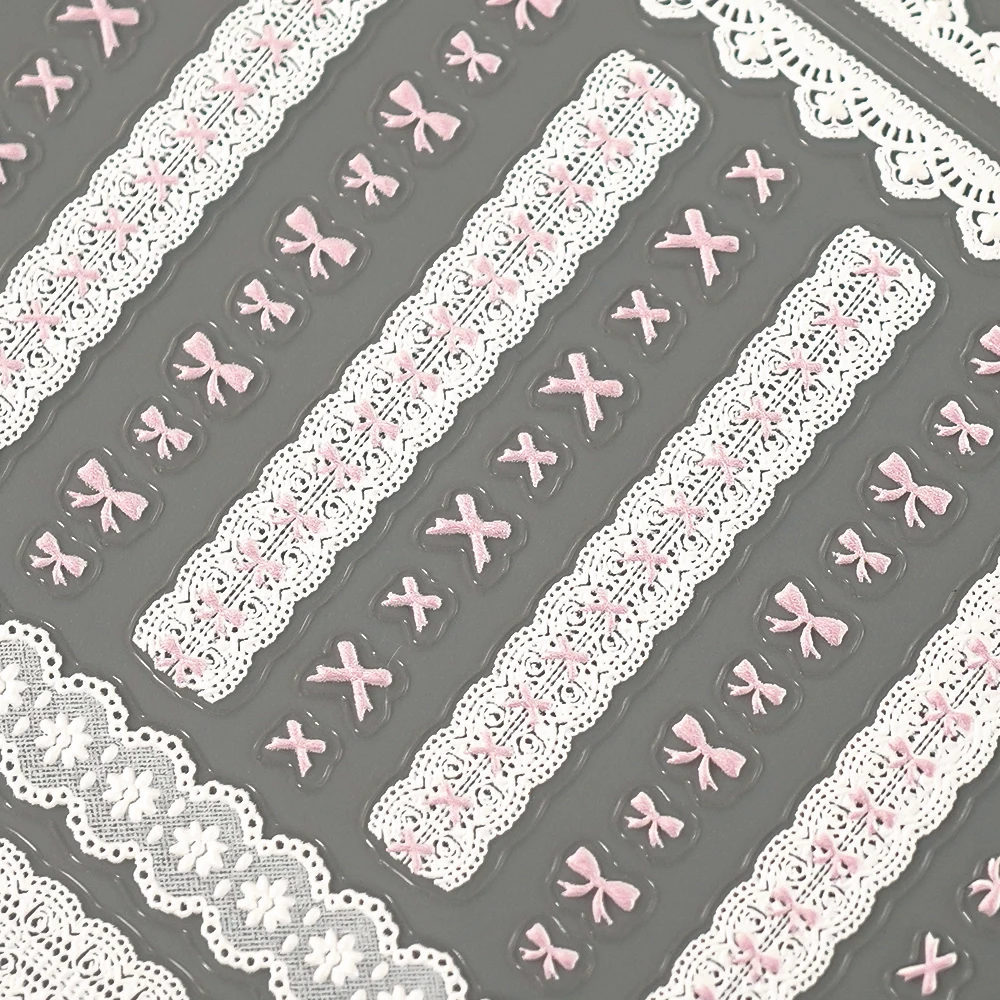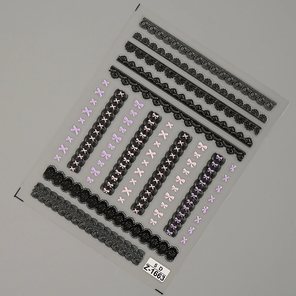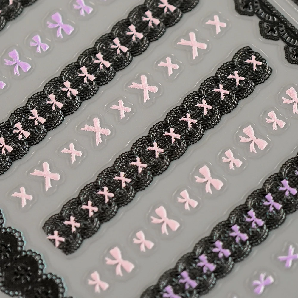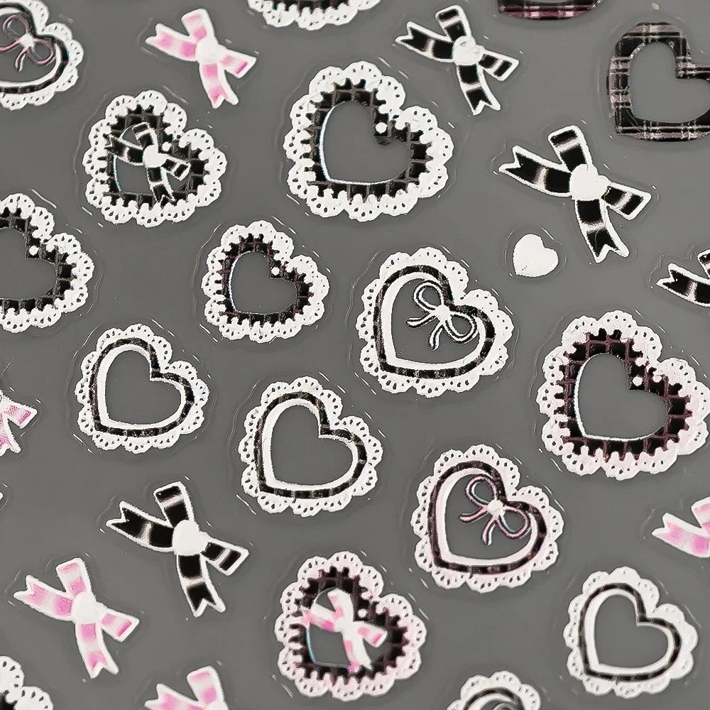 Sweet Pink Bowknot Black Lace Heart Nail Stickers 3D Self Adhesive Nail Art Stickers Manicure Decorations Decals