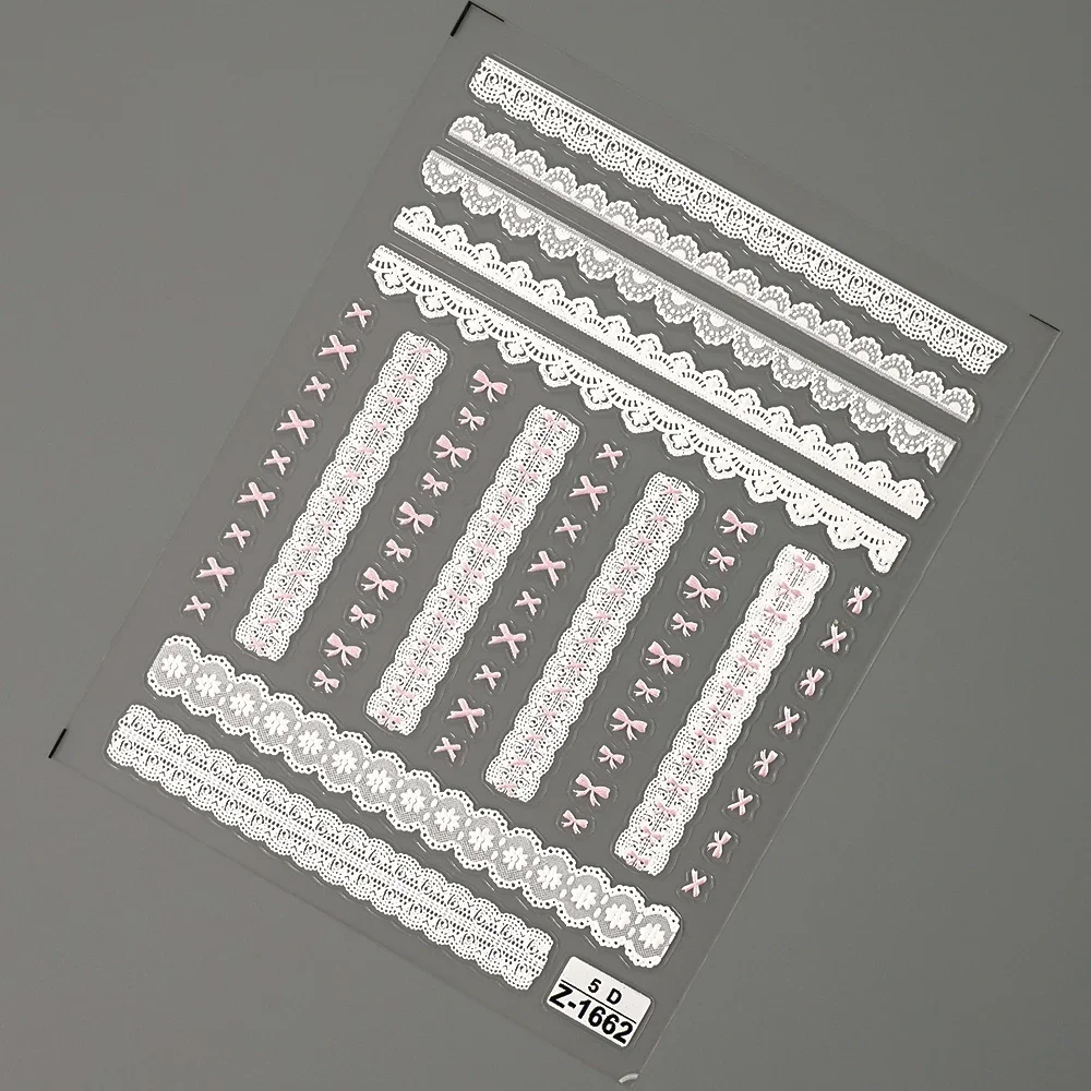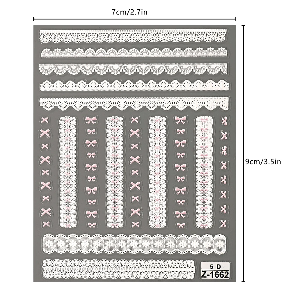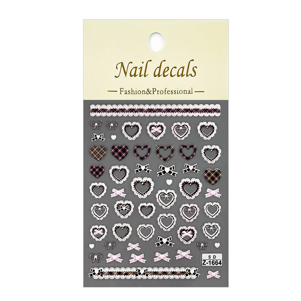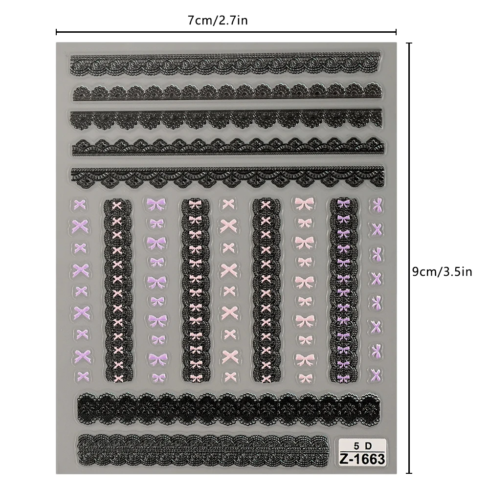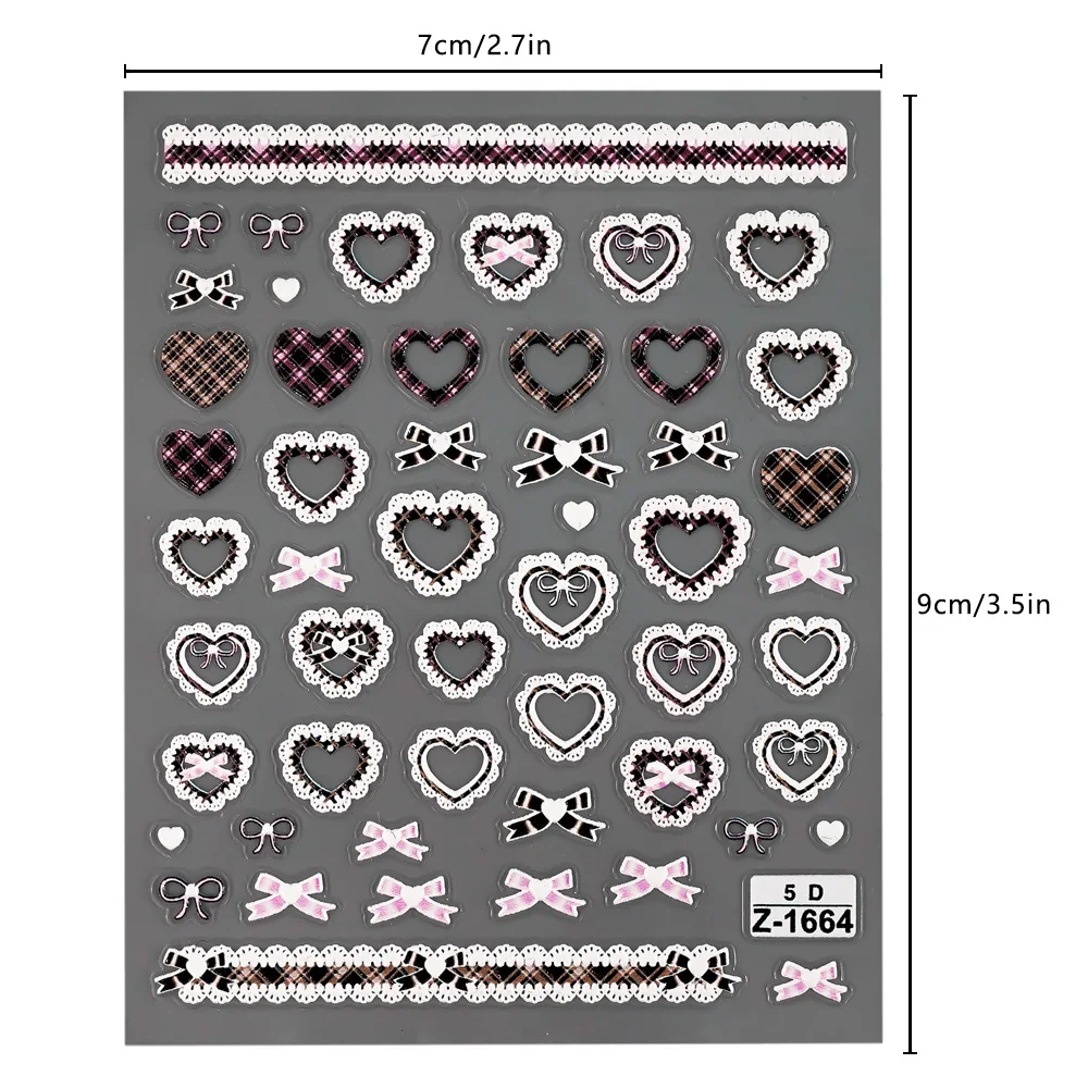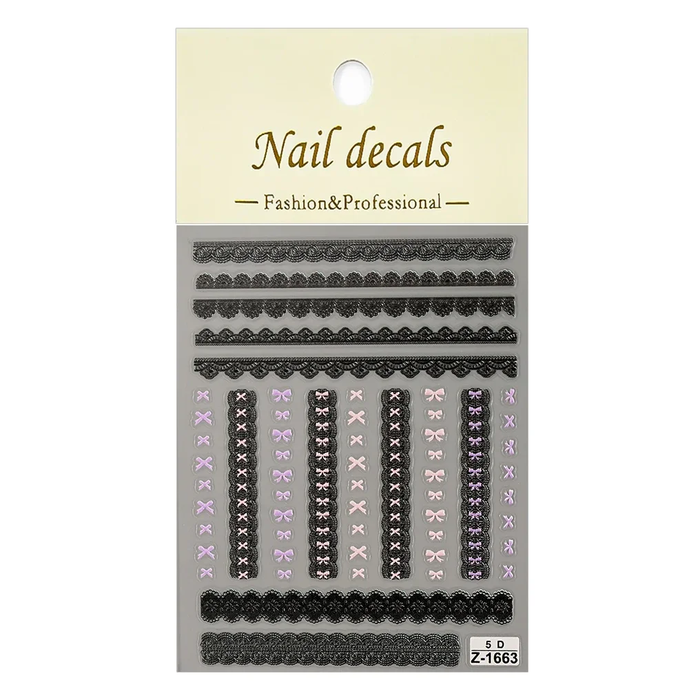 Sweet Pink Bowknot Black Lace Heart Nail Stickers 3D Self Adhesive Nail Art Stickers Manicure Decorations Decals